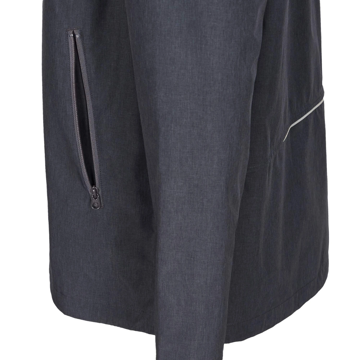 Die sportliche Regenjacke ist mit einem unterlegten Front-Reißverschluss mit Kinnschutz sowie einer leicht verlängerten Rückenpartie ausgestattet. Die Kapuze, den Saum und die Ärmelabschlüsse kannst du deinen Bedürfnissen nach einstellen. Für Stauraum sorgen die beiden seitlichen Taschen.